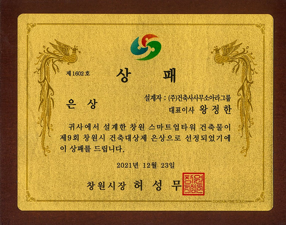 제9회 창원시 건축대상 은상 수상 - 창원 스마트업타워(지식산업센터)