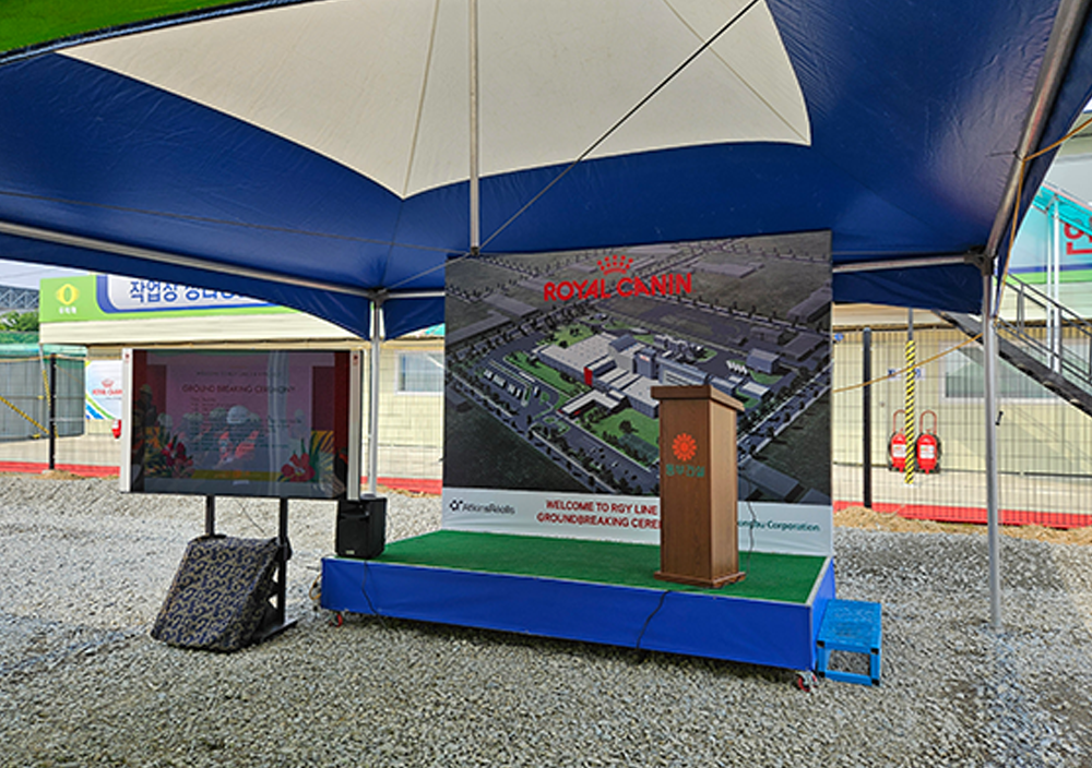 Inside 로얄캐닌 증축공사 기공식이 있었습니다. 2024-05-07 로얄캐닌 김제 사료공장 증축공사 기공식이 4월 30일 (화)에 있었습니다.이날 행사에는 CM본부 김택진 본부장님, 김수학 상무님, 설계1본부 서상준 본부장님께서 참석하셨습니다. chevron_left PREV menu LIST NEXT chevron_right