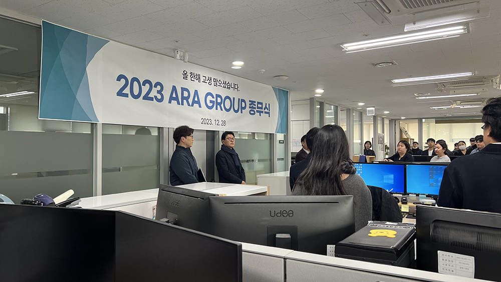 Inside 2023년 계묘년 ARA GROUP 종무식 2024-01-08 열심히 달려온 계묘년(癸卯年) 검은토끼의 한 해가 어느덧 저물었습니다.올 한 해 정말 수고 많이 하셨습니다. 항상 건강하시고 행복 가득한 2024년을 맞이하시기 바랍니다. chevron_left PREV menu LIST NEXT chevron_right